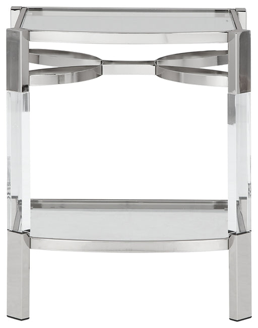 Signature Design by Ashley®If you love the idea of total transparency, this accent table is surely a sight for sore eyes. Crafted of clear acrylic, the glass top and open gla...