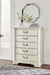 | Details | B980B5: Includes headboard, footboard and rails, Made with hardwood solids, spruce veneer, MDF substrates and cast resin components , Antiqued white painted finish, Polyester upholstery, Button tufting, Foundation/box spring required, sold separately, Mattress available, sold separately, Assembly required, B980B1: Includes dresser and mirror, Made with hardwood solids, spruce veneer, MDF substrates and cast resin components, Antiqued white painted finish, 9 drawers with fully finished interiors, French and English dovetail construction and ball-bearing side glides, Metal bar pulls with aged pewter-tone finish, Mirror attaches to back of dresser, B980-46: Made with hardwood solids, spruce veneer, MDF substrates and cast resin components, Antiqued white painted finish, 5 drawers with fully finished interiors, French and English dovetail construction and ball-bearing side glides, Metal bar pulls with aged pewter-tone finish, | |
