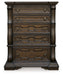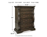 | Details | B947B5: Includes upholstered panel headboard, upholstered panel footboard and panel rails, Made with hardwood solids, oak and ash swirl veneers, MDF substrates and cast resin components, Dark brown finish, Polyester upholstery with button tufting, Foundation/box spring required, sold separately, Mattress available, sold separately, Assembly required, B947B1: Includes dresser and mirror, Made with hardwood solids, oak and ash swirl veneers, MDF substrates and cast resin components, Dark brown finish, 6 smooth-gliding drawers with dovetail construction (top drawer felt lined), Drawer pulls with antiqued goldtone finish, Mirror attaches to back of dresser, B947-46: Made with hardwood solids, oak and ash swirl veneers, MDF substrates and cast resin components, Dark brown finish, 5 smooth-gliding drawers with dovetail construction (top drawer felt lined), Drawer pulls with antiqued goldtone finish, | |