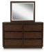 Details PCB857B6: Includes canopy, upholstered headboard, footboard, rails, posts and slats, Made with hardwood solids, mango wood veneer and MDF substrates , Side rails feature laminated solid hardwood slat support rails (or LVL) with glued and screwed blocking for added strength, Complex, rich dark brown finish, Foam headboard cushion with polyester upholstery , Measure room, including ceiling height, to ensure bed clears fans and light fixtures, Foam cushion with polyester upholstery , Foundation/box spring required, sold separately , Mattress available, sold separately , USB-A and USB-C charging ports, Power cord included; UL Listed, Assembly required, PCB857B1: Made with hardwood solids, mango wood veneer and MDF substrates , Complex, rich dark brown finish, Full-length metal rail pulls with matte black finish, 6 smooth-gliding drawers with fully finished interiors, dovetail construction and heavy-duty ball-bearing side glides (top drawers felt lined), Mirror attaches to back of dresser, Soft rounded pilasters, Raised plinth base, PCB857-92: Made with hardwood solids, mango wood veneer and MDF substrates, Complex, rich dark brown finish, Metal rail pulls with matte black finish, 2 smooth-gliding drawers with fully finished interiors, dovetail construction and heavy-duty ball-bearing side glides (top drawer felt lined), Soft rounded pilasters, Raised plinth base,