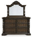| Details | B947B4: Includes upholstered panel headboard, upholstered panel footboard and panel rails, Made with hardwood solids, oak and ash swirl veneers, MDF substrates and cast resin components, Dark brown finish, Polyester upholstery with button tufting, Foundation/box spring required, sold separately, Mattress available, sold separately, Assembly required, B947B1: Includes dresser and mirror, Made with hardwood solids, oak and ash swirl veneers, MDF substrates and cast resin components, Dark brown finish, 6 smooth-gliding drawers with dovetail construction (top drawer felt lined), Drawer pulls with antiqued goldtone finish, Mirror attaches to back of dresser, B947-46: Made with hardwood solids, oak and ash swirl veneers, MDF substrates and cast resin components, Dark brown finish, 5 smooth-gliding drawers with dovetail construction (top drawer felt lined), Drawer pulls with antiqued goldtone finish, | |