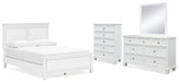 Fortman Queen Panel Bed with Mirrored Dresser and Chest