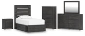 | Details | PCB2108B18: Includes panel headboard/footboard, 2 under bed storage units and roll slats, Made with engineered wood (MDF/particleboard/plywood) and decorative laminate for the right balance of affordability and durability , Charcoal finish over replicated oak wood grain with authentic touch, Decorative laminate replicates natural or man-made material surfaces with consistent color, pattern and texture, 4 smooth-gliding drawers, 4 storage cubbies, Bed does not require additional foundation/box spring; accommodates most zero clearance adjustable bases with the addition of a bunkie board, Mattress available, sold separately, Minor assembly required, PCB2108B1: Includes dresser and mirror, Made with engineered wood (MDF/particleboard/plywood) and decorative laminate for the right balance of affordability and durability , Charcoal finish over replicated oak grain with authentic touch, Decorative laminate replicates natural or man-made material surfaces with consistent color, pattern and texture, Large-scale dark colored handles, 6 smooth-gliding drawers, Drawer interiors are lined with a faux linen laminate for a clean, finished look , Mirror attaches to back of dresser; can also be mounted on wall horizontally or vertically, Safety is a top priority, clothing storage units are designed to meet the most current standard for stability, ASTM F 2057 (ASTM International), Drawers extend out to accommodate maximum access to drawer interior while maintaining safety, Minor assembly required, PCB2108-46: Made with engineered wood (MDF/particleboard/plywood) and decorative laminate for the right balance of affordability and durability, Charcoal finish over replicated oak grain with authentic touch, Decorative laminate replicates natural or man-made material surfaces with consistent color, pattern and texture, Large-scale dark colored handles, 5 smooth-gliding drawers, Drawer interiors are lined with a faux linen laminate for a clean, finished look, Safety is a top priority, clothing storage units are designed to meet the most current standard for stability, ASTM F 2057 (ASTM International), Drawers extend out to accommodate maximum access to drawer interior while maintaining safety, Minor assembly required, PCB2108-92: Made with engineered wood (MDF/particleboard/plywood) and decorative laminate for the right balance of affordability and durability, Charcoal finish over replicated oak grain with authentic touch, Decorative laminate replicates natural or man-made material surfaces with consistent color, pattern and texture, Large-scale dark colored handles, 2 smooth-gliding drawers, Drawer interiors are lined with a faux linen laminate for a clean, finished look, 2 slim-profile USB-C charging ports, Power cord included; UL Listed, Minor assembly required, | |