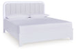 This queen upholstered panel bed is a showstopper, bringing a touch of modern glamour to your sanctuary. A sleek white finish, paired with the cushioned headboard’s off-white fabric and metallic silver accent threads, creates a sophisticated feel. Built-in LED lighting adds a soft glow, making it even easier to get ready in the morning or wind down at night. It’s a simply stunning way to achieve the bedroom of your dreams.