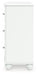Details Made with engineered wood (MDF/particleboard/plywood) for the right balance of affordability and durability, Matte white finish, Decorative laminate replicates natural or man-made material surfaces with consistent color, pattern and texture, Crystal drawer knobs, 6 smooth-gliding drawers, Drawer interiors are lined with a faux linen laminate for a clean, finished look, Safety is a top priority, clothing storage units are designed to meet the most current standards for stability, ATM F 2057 (ASTM International), Drawers extend out to accommodate maximum access to drawer interior while maintaining safety, Minor assembly required