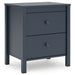 Details | Made with engineered wood (MDF/particleboard/plywood) and decorative laminate for the right balance of affordability and durability, Matte navy blue finish, Decorative laminate replicates natural or man-made material surfaces with consistent color, pattern and texture, Knobs with matte navy blue finish, 2 smooth-gliding drawers with vinyl-wrapped sides and back for durability, Assembly required | |