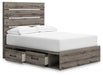 Graystorm Full Panel Bed with Storage with Mirrored Dresser
