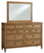 | Details | B895B2: Includes upholstered panel headboard, footboard, rails and slats, Made with hardwood solids, hickory veneer and MDF substrates, Light brown wood-tone finish, Polyester upholstery, Foundation/box spring required, sold separately, Mattress available, sold separately, Assembly required, B895B1: Includes dresser and mirror, Made with hardwood solids, hickory wood veneer and MDF substrates, Light brown wood-tone finish, Dark bronze-tone drawer pulls, 9 drawers with fully finished interior, dovetail construction and heavy duty ball-bearing side glides (top drawers felt lined), Mirror attaches to back of dresser, | |