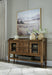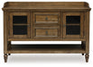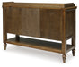 Traditional style doesn’t have to be stuffy. It can feel warm, inviting and beautifully in the moment. Case in point: this dining server. It's ready to stand in as an entertainment center, entryway storage or a console table, with a profiled top and glass door cabinets giving it an allure all its own. Equally special is the rich brown finish, which exudes a mood of timeless charm. How's that for relaxed refinement?