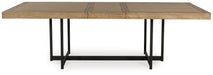 Details Made with hardwood solids, mango wood veneer, MDF substrates and metal, Light brown wood finish, Gunmetal gray finish on tubular steel base, Self-storing removable leaf, Seats up to 8, Assembly required