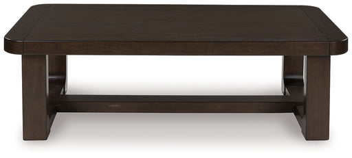 Signature Design by Ashley®If casual contemporary style is your thing, then you'll love this coffee table. Its thick solid wood edge, softly rounded corners and dark wood-ton...