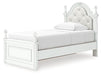 Fit for a princess. This twin upholstered panel storage bed’s crisp matte white finish pairs with charming ornate beading and sumptuous button-tufted upholstery—perfect for your girly girl. Spacious storage drawers neatly tuck away bedroom essentials. Decorative ball tops and multicolored LED lighting in the headboard are the crowning touches to make your little one feel like royalty.