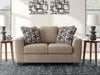 Transitional and right on trend. This loveseat's upholstery is a delightful change from the ordinary, with hints of soft brown giving the gray hue added depth. It’s punctuated with chic accent pillows in an eye-catching, stylized stripe design. Whether you're hosting friends and family or relaxing solo, this loveseat invites homey, comfortable character into your space.