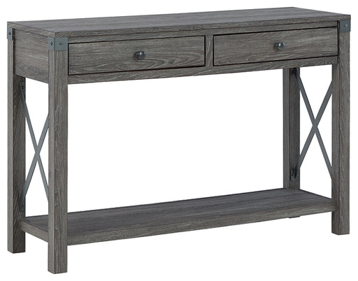 Signature Design by Ashley®Consumer's ChoiceThis sofa table is simple in design but big on style. Finished with a trend-right grayish brown wood tone, its bold, blocky profile and natural mar...