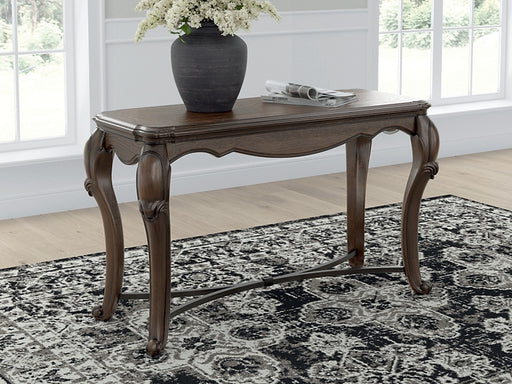 Signature Design by Ashley®This sofa table gives traditional design a wonderful sense of relevance. Its details, which include embellished legs and a stretcher with a decorat...