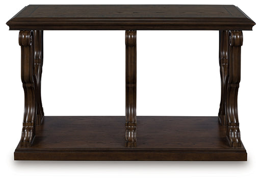 Signature Design by Ashley®This sofa table gives traditional design a wonderful sense of relevance. Its details, which include embellished legs and a stretcher with a decorat...