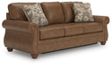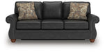 Everyone can have the best rest in the house with this queen sofa sleeper. Its nailhead trim puts the finishing touches on the traditional roll arms you love. The sofa's comfy, durable cushions—wrapped in a rustic yet sophisticated faux leather—keep you feeling relaxed, while its turned legs show that style and quality flow from top to bottom. A pull-out queen mattress made with quality memory foam comfortably accommodates overnight guests.