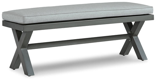 Add a distinguished touch of gray to your outdoor living space with this bench. It's made with an aluminum frame with a wood-look finish for a rela...