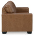 Details | Corner-blocked frame, Loose seat cushions; attached boxed back cushions, High-quality foam cushions wrapped in poly fiber, 100% top grain leather covers inside areas such as the back, seat and arm cushions; skillfully matched faux leather covers the remaining areas, Corrected grain leather; two-tone sauvage effect enhances the depth of the color while replicating the effect of a wax pullup leather, Due to its natural origin, real leather can show individual characteristics such as healed scars, growth marks, grain variation and shade variation, Natural variations make each hide unique and do not detract from the wearing qualities of leather, Exposed feet with faux wood finish, Platform foundation system resists sagging 3x better than spring system after 20,000 testing cycles by providing more even support, Smooth platform foundation maintains tight, wrinkle-free look without dips or sags that can occur over time with sinuous spring foundations | |