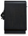 Details B821B5: Includes upholstered panel headboard, footboard and rails , Made with hardwood solids and ash veneer, Black finish on textured wood grain surface , Waterfall edges, Polyester upholstery, Foundation/box spring required, sold separately, Mattress available, sold separately, Assembly required, B821B1: Includes dresser and mirror, Made with hardwood solids and ash veneer, Black finish on textured wood grain surface , Burnished nickel-tone pulls, Waterfall edges, 7 smooth-gliding drawers with fully finished interior, dovetail construction and heavy duty ball-bearing side glides, Mirror attaches to back of dresser, B821-91: Made with hardwood solids and ash veneer, Black finish on textured wood grain surface, Brushed nickel-tone pulls, Waterfall edges, Smooth-gliding drawer with fully finished interior, dovetail construction and heavy duty ball-bearing side glides, Lower cubby shelf with built-in LED nightlight, 110V power supply with USB-A and USB-C charging ports, Power cord included; UL Listed,