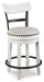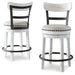 Details | D546-13: Made of pine wood, veneers and engineered wood, Two-tone finish, Black metal footrest, Seats up to 4, Assembly required, D546-524: Made with wood, engineered wood and metal, Vintage white finish, Cushioned seat with linen colored polyester upholstery, Smooth 360-degree swivel, Nailhead trim detail, Assembly required, | |