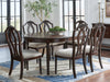 Details D764-35: Made with hardwood solids, cherry veneer, cast resin components and engineered wood substrates, Cherry brown finish, Removable center leaf, Seats up to 6, Assembly required, D764-01: Made with solid wood frames and cast resin components, Cherry brown finish, Polyester upholstery, Cushioned seat, Includes adjustable levelers, Assembly required,