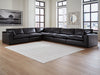 | Details | Includes 6 modular pieces: left-arm facing corner chair, 3 armless chairs, wedge and right-arm facing corner chair, "Left-arm" and "right-arm" describe the position of the arm when you face the piece, Modular pieces can float anywhere; sides are finished (with no connectors), Corner-blocked frame, Loose back cushions and attached seat cushions, Feather-fiber blend cushion, Arm bolster pillows included, 100% top grain leather covers inside areas such as the back, seat and arm cushions; skillfully matched faux leather covers the remaining areas, Due to its natural origin, real leather can show individual characteristics such as healed scars, growth marks, grain variation and shade variation, Natural variations make each hide unique and do not detract from the wearing qualities of leather, Non-skid legs, Platform foundation system resists sagging 3x better than spring system after 20,000 testing cycles by providing more even support, Smooth platform foundation maintains tight, wrinkle-free look without dips or sags that can occur over time with sinuous spring foundations | |