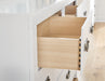 Details | B427B4: Includes full panel headboard, footboard, rails and slats, Made with hardwood solids, okoume veneer and MDF substrates, White finish, Foundation/box spring required, sold separately, Mattress available, sold separately, Assembly required, B427B1: Includes dresser and mirror, Made with hardwood solids, okoume veneer and MDF substrates, White finish, 6 drawers with dovetail construction and metal center guides, Hardware with dark finish, Drawer interiors are lined with a wood grain laminate for a clean, finished look, Mirror attaches to back of dresser, B427-92: Made with hardwood solids, okoume veneer and MDF substrates, White finish, 2 drawers with dovetail construction and metal center guides, Hardware with dark finish, Drawer interiors are lined with a clean wood grain laminate for a clean, finished look, | |