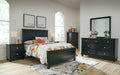 Details | B687B4: Includes full panel headboard, footboard and rails, Made with hardwood solids, birch veneer and MDF substrate, Black painted finish, Thick profiled tops, Tapered feet, Foundation/box spring required, sold separately, Mattress available, sold separately, Assembly required, Bed is compatible with an adjustable base, B687B1: Includes dresser and mirror, Made with hardwood solids, birch veneer and MDF substrate, Black painted finish, 7 smooth-gliding drawers with dovetail construction and ball-bearing side glides, Round metal drawer knobs with satin nickel-tone finish, Framed drawer fronts, Tapered feet, Mirror attaches to back of dresser, Assembly required, B687-46: Made with hardwood solids, birch veneer and MDF substrate, Black painted finish, 5 smooth-gliding drawers with dovetail construction and ball-bearing side glides, Round metal drawer knobs with satin nickel-tone finish, Framed drawer fronts, Tapered feet, B687-92: Made with hardwood solids, birch veneer and MDF substrate, Black painted finish, 2 smooth-gliding drawers with dovetail construction and ball-bearing side glides, Round metal drawer knobs with satin nickel-tone finish, Framed drawer fronts, Tapered feet, | |