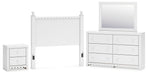 Make morning or bedtime that much more magical with this bedroom package. Charmingly cute with its scalloped detailing, it appeals to both her sense of playful whimsy and your love for modern design. A crisp white finish gives you the versatility to pair the set with existing decor.