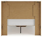 Details | B2310B20: Includes panel headboard, storage footboard, platform rails and roll slats , Made with engineered wood (MDF/particleboard/plywood) and decorative laminate for the right balance of affordability and durability, Rustic white finish over replicated reclaimed oak grain with authentic touch, Decorative laminate replicates natural or man-made material surfaces with consistent color, pattern and texture, 2 smooth-gliding storage drawers, Drawer interiors are lined with a faux linen laminate for a clean, finished look, Bed does not require additional foundation/box spring; accommodates most zero clearance adjustable bases with the addition of a bunkie board , Mattress available, sold separately, Minor assembly required, B2310B1: Made with engineered wood (MDF/particleboard/plywood) and decorative laminate for the right balance of affordability and durability, Rustic white finish over replicated reclaimed oak grain with authentic touch, Decorative laminate replicates natural or man-made material surfaces with consistent color, pattern and texture, Handles with dark pewter-tone finish, 6 smooth-gliding drawers, Drawer interiors are lined with a faux linen laminate for a clean, finished look, Framed front and pilasters, Safety is a top priority, clothing storage units are designed to meet the most current standard for stability, ASTM F 2057 (ASTM International), Drawers extend out to accommodate maximum access to drawer interior while maintaining safety, Mirror attaches to back of dresser; can also be mounted on wall horizontally or vertically , Minor assembly required, | |