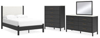 Cadmori Full Upholstered Panel Bed with Mirrored Dresser and Chest