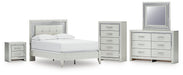Zyniden Full Upholstered Panel Bed with Mirrored Dresser, Chest and Nightstand