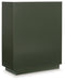 This accent cabinet makes a big impact with just one piece. Its intricately patterned doors impress with their dimension, while the dark green finish and sleek goldtone handles add a touch of modern elegance. Adjustable shelves add everyday functionality to this sophisticated yet approachable piece.