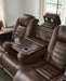 Details One-touch power control with adjustable positions, Easy View™ adjustable headrest and zero-draw USB port, Zero-draw technology only consumes power when the USB receptacle is in use, Zero-gravity mechanism allows optimum reclining comfort with infinite reclining positions at the touch of a button, Easy View™ adjustable headrest puts your head and neck in optimum position for reading or watching TV even if you're fully reclined, Extended ottoman for enhanced comfort, Corner-blocked frame with metal reinforced seat, Attached cushions; high-quality foam cushions wrapped in poly fiber, 100% top grain leather covers inside areas such as the back, seat and arm cushions; skillfully matched faux leather covers the remaining areas, Due to its natural origin, real leather can show individual characteristics such as healed scars, growth marks, grain variation and shade variation, Natural variations make each hide unique and do not detract from the wearing qualities of leather, Drop-down table with LED reading lights and dual cup holders; storage armrests with 2 cup holders, Wireless and USB charging, Power cord included; UL Listed
