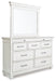 Details | B777B8: Includes king panel headboard and footboard with king panel rails, Made with solid wood, veneers and engineered wood, Distressed whitewash finish, Foundation/box spring required, sold separately, Mattress available, sold separately, Assembly required, B777B1: Includes dresser and mirror, Made with solid wood, veneers and engineered wood, Distressed whitewash finish, Dark gray pewter-tone finished metal hardware, 7 smooth-gliding drawers, plus 2 small-scaled accessory drawers, Mirror attaches to back of dresser, Assembly required, | |