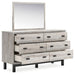 Details | B1036B8: Includes king panel headboard, footboard, rails, headboard extensions and 2 nightstands, Made with engineered wood (MDF/particleboard/plywood) and decorative laminate for the right balance of affordability and durability, Light gray finish over a replicated oak grain with authentic touch; base has matte black finish with subtle replicated wood grain, Decorative laminate replicates natural or man-made material surfaces with consistent color, pattern and texture, Handles with matte black finish, Headboard extensions mount to nightstands; each includes shelf with warm LED lighting underneath, 2 smooth-gliding drawers; drawer interiors are lined with a faux linen laminate for a clean, finished look, Each nightstand has Qi wireless charging and 1 USB charging port, Foundation/box spring required, sold separately; mattress available, sold separately, Power cord included; UL Listed, Assembly required, B1036B1: Includes dresser and mirror, Made with engineered wood (MDF/particleboard/plywood) and decorative laminate for the right balance of affordability and durability, Light gray finish over a replicated oak grain with authentic touch; base has matte black finish with subtle replicated wood grain, Decorative laminate replicates natural or man-made material surfaces with consistent color, pattern and texture, Handles with matte black finish, 6 smooth-gliding drawers, Drawer interiors are lined with a faux linen laminate for a clean, finished look, Mirror attaches to back of dresser; can also be hung horizontally or vertically, Safety is a top priority, clothing storage units are designed to meet the most current standard for stability, ASTM F 2057 (ASTM International), Drawers extend out to accommodate maximum access to drawer interior while maintaining safety, Assembly required, | |