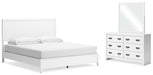 Details | B427B8: Includes king panel headboard, footboard, rails and slats, Made with hardwood solids, okoume veneer and MDF substrates, White finish, Foundation/box spring required, sold separately, Mattress available, sold separately, Assembly required, B427B1: Includes dresser and mirror, Made with hardwood solids, okoume veneer and MDF substrates, White finish, 6 drawers with dovetail construction and metal center guides, Hardware with dark finish, Drawer interiors are lined with a wood grain laminate for a clean, finished look, Mirror attaches to back of dresser, | |