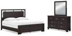 Details B441B8: Includes panel headboard, footboard, rails and slats, Made with hardwood solids, engineered wood veneer and MDF substrates, Dark brown finish, Floating panel headboard, Picture frame footboard, Foundation/box spring required, sold separately , Mattress available, sold separately, Assembly required, B441B1: Includes dresser and mirror, Made with hardwood solids, engineered wood veneer and MDF substrates, Dark brown finish, Metal bar pulls with bright nickel-tone finish, 7 smooth-gliding drawers with dovetail construction and metal center guides, Drawer interiors are lined with a wood grain laminate for a clean, finished look, Top moulding on dresser, Mirror attaches to back of dresser,