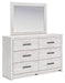 Details | B3788B7: Includes panel headboard/footboard and rails, Made with engineered wood (MDF/particleboard/plywood) and decorative laminate for the right balance of affordability and durability, Whitewash replicated worn through paint with authentic touch, Decorative laminate replicates natural or man-made material surfaces with consistent color, pattern and texture, Foundation/box spring required, sold separately, Mattress available, sold separately, Minor assembly required, B3788B1: Includes dresser and mirror, Made with engineered wood (MDF/particleboard/plywood) and decorative laminate for the right balance of affordability and durability, Whitewash replicated worn through paint with authentic touch, Decorative laminate replicates natural or man-made material surfaces with consistent color, pattern and texture, Large handles in black finish, 6 smooth-gliding drawers, Framed front and pilasters, Mirror attaches to back of dresser, Safety is a top priority, clothing storage units are designed to meet the most current standard for stability, ASTM F 2057 (ASTM International), Drawers extend out to accommodate maximum access to drawer interior while maintaining safety, Minor assembly required, | |