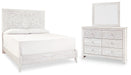 Details B181B10: Includes headboard, footboard and rails, Made of engineered wood (MDF/particleboard) and decorative laminate, Whitewash replicated worn through paint with authentic touch, Headboard with adjustable height, Mattress not included, sold separately, Foundation/box spring required, sold separately, Assembly required, Bed is compatible with an adjustable base, B181B8: Dresser with mirror, Made of engineered wood (MDF/particleboard) and decorative laminate, Whitewash replicated worn through paint with authentic touch, Hardware features a worn-through painted effect, 6 smooth-gliding drawers with faux laminate lining, Mirror attaches to back of dresser, Assembly required,