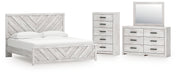 Cayboni King Panel Bed with Mirrored Dresser and Chest