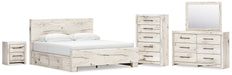 Lawroy King Panel Bed with Mirrored Dresser, Chest and Nightstand