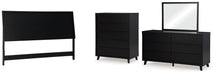 Details B1013-58: Made with engineered wood (MDF/particleboard/plywood) and decorative laminate for the right balance of affordability and durability, Matte black finish with subtle replicated wood grain, Decorative laminate replicates natural or man-made material surfaces with consistent color, pattern and texture, ¼" bolts (not included) are needed to attach headboard to your existing bed frame, Minor assembly required, B1013B11: Includes dresser and mirror, Made with engineered wood (MDF/particleboard/plywood) and decorative laminate for the right balance of affordability and durability, Matte black finish with subtle replicated wood grain, Decorative laminate replicates natural or man-made material surfaces with consistent color, pattern and texture, 6 smooth-gliding drawers, Drawer interiors are lined with a faux linen laminate for a clean, finished look, Integrated drawer pulls, Framed front and pilasters, Mirror attaches to back of dresser; can also be mounted on wall horizontally or vertically, Safety is a top priority, clothing storage units are designed to meet the most current standard for stability, ASTM F 2057 (ASTM International), Drawers extend out to accommodate maximum access to drawer interior while maintaining safety, Minor assembly required, B1013-345: Made with engineered wood (MDF/particleboard/plywood) and decorative laminate for the right balance of affordability and durability, Matte black finish with subtle replicated wood grain, Decorative laminate replicates natural or man-made material surfaces with consistent color, pattern and texture, 5 smooth-gliding drawers, Drawer interiors are lined with a faux linen laminate for a clean, finished look, Integrated drawer pulls, Framed front and pilasters, Safety is a top priority, clothing storage units are designed to meet the most current standard for stability, ASTM F 2057 (ASTM International), Drawers extend out to accommodate maximum access to drawer interior while maintaining safety, Minor assembly required,