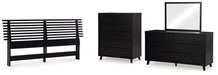 Details B1013-158: Made with engineered wood (MDF/particleboard/plywood) and decorative laminate for the right balance of affordability and durability, Matte black finish with subtle replicated wood grain, Decorative laminate replicates natural or man-made material surfaces with consistent color, pattern and texture, ¼" bolts (not included) are needed to attach headboard to your existing bed frame, Minor assembly required, B1013B11: Includes dresser and mirror, Made with engineered wood (MDF/particleboard/plywood) and decorative laminate for the right balance of affordability and durability, Matte black finish with subtle replicated wood grain, Decorative laminate replicates natural or man-made material surfaces with consistent color, pattern and texture, 6 smooth-gliding drawers, Drawer interiors are lined with a faux linen laminate for a clean, finished look, Integrated drawer pulls, Framed front and pilasters, Mirror attaches to back of dresser; can also be mounted on wall horizontally or vertically, Safety is a top priority, clothing storage units are designed to meet the most current standard for stability, ASTM F 2057 (ASTM International), Drawers extend out to accommodate maximum access to drawer interior while maintaining safety, Minor assembly required, B1013-345: Made with engineered wood (MDF/particleboard/plywood) and decorative laminate for the right balance of affordability and durability, Matte black finish with subtle replicated wood grain, Decorative laminate replicates natural or man-made material surfaces with consistent color, pattern and texture, 5 smooth-gliding drawers, Drawer interiors are lined with a faux linen laminate for a clean, finished look, Integrated drawer pulls, Framed front and pilasters, Safety is a top priority, clothing storage units are designed to meet the most current standard for stability, ASTM F 2057 (ASTM International), Drawers extend out to accommodate maximum access to drawer interior while maintaining safety, Minor assembly required,