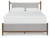 Details | B615B6: Includes upholstered panel headboard and footboard , Solid wood frame, Due to the use of natural wood materials, some variations may occur , Frame with medium brown wood tone finish, Polyester upholstery, Tapered legs, Foundation/box spring required, sold separately , Mattress available, sold separately, Assembly required, B615B1: Includes dresser and mirror, Made with hardwood solids, mango wood veneer and MDF substrates, Medium brown wood-tone finish, 6 drawers with fully finished interior, dovetail construction and heavy duty ball-bearing side glides, Round tapered legs, Mirror attaches to back of dresser, | |