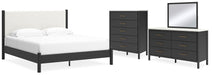 Cadmori King Upholstered Panel Bed with Mirrored Dresser and Chest