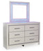 Zyniden King Upholstered Panel Bed with Mirrored Dresser and Nightstand
