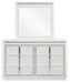 Details | B822B4: Includes king/California king upholstered headboard, storage footboard, rails and roll slats, Made with solid wood components, MDF substrate and decorative laminate, White lacquer finish, Vertical metal drawer pulls, Faux leather upholstery, Built-in LED lighting with 3-way dimmer switch, 2 drawers with fully finished interior, dovetail construction and ball-bearing side glides, Drawers with rhinestone frames; textured laminate drawer fronts, Power cord included; UL Listed, Bed does not require additional foundation/box spring; accommodates most zero clearance adjustable bases with the addition of a bunkie board, Mattress available, sold separately, Assembly required, B822B1: Includes dresser and mirror, Made with solid wood components, MDF substrate and decorative laminate, White lacquer finish, Vertical metal drawer pulls, Built-in LED lighting with 3-way dimmer switch, 6 drawers with fully finished interior, dovetail construction and heavy duty ball-bearing side glides, Drawers with rhinestone frames; textured laminate drawer fronts, Mirror attaches to back of dresser, Power cord included; UL Listed, B822-46: Made with solid wood components, MDF substrate and decorative laminate, White lacquer finish, Vertical metal drawer pulls, Built-in LED lighting with 3-way dimmer switch, 5 drawers with fully finished interior, dovetail construction and heavy duty ball-bearing side glides, Drawers with rhinestone frames; textured laminate drawer fronts, Power cord included; UL Listed, | |