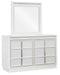 Details | B822B4: Includes king/California king upholstered headboard, storage footboard, rails and roll slats, Made with solid wood components, MDF substrate and decorative laminate, White lacquer finish, Vertical metal drawer pulls, Faux leather upholstery, Built-in LED lighting with 3-way dimmer switch, 2 drawers with fully finished interior, dovetail construction and ball-bearing side glides, Drawers with rhinestone frames; textured laminate drawer fronts, Power cord included; UL Listed, Bed does not require additional foundation/box spring; accommodates most zero clearance adjustable bases with the addition of a bunkie board, Mattress available, sold separately, Assembly required, B822B1: Includes dresser and mirror, Made with solid wood components, MDF substrate and decorative laminate, White lacquer finish, Vertical metal drawer pulls, Built-in LED lighting with 3-way dimmer switch, 6 drawers with fully finished interior, dovetail construction and heavy duty ball-bearing side glides, Drawers with rhinestone frames; textured laminate drawer fronts, Mirror attaches to back of dresser, Power cord included; UL Listed, B822-92: Made with solid wood components, MDF substrate and decorative laminate, White lacquer finish, Vertical metal drawer pulls, Built-in LED lighting with 3-way dimmer switch, 2 drawers with fully finished interior, dovetail construction and heavy duty ball-bearing side glides, Drawers with rhinestone frames; textured laminate drawer fronts, 110V power supply with USB-A and USB-C charging ports, Power cord included; UL Listed, | |